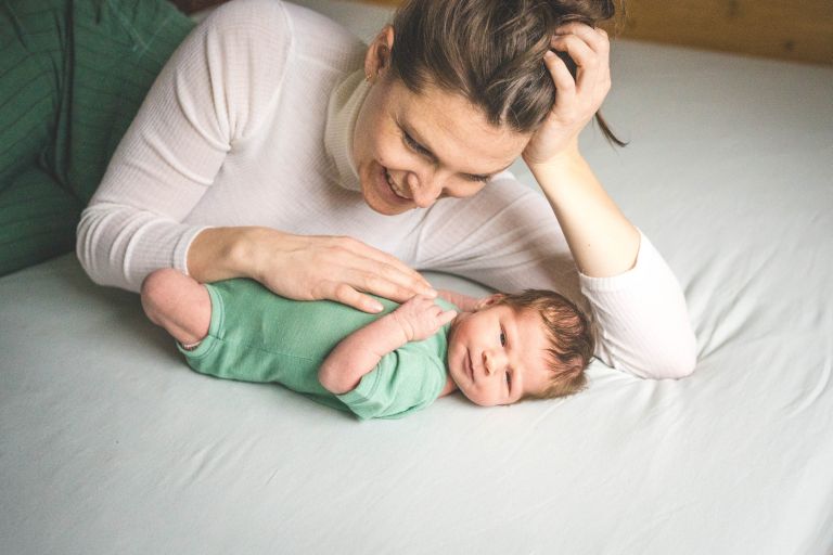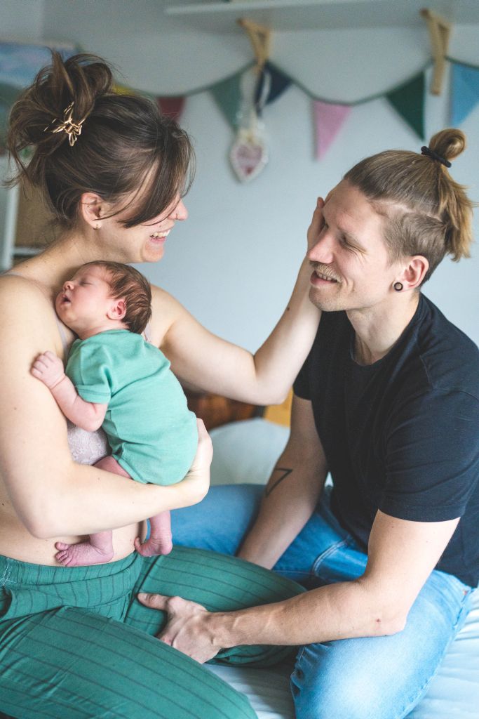 Euer Baby ist in seiner vertrauten Umgebung, ihr könnt jederzeit stillen oder kuscheln und Geschwisterkinder dürfen einfach dabei sein. Dadurch entstehen natürliche und echte Familienmomente, die sich nicht gestellt anfühlen.